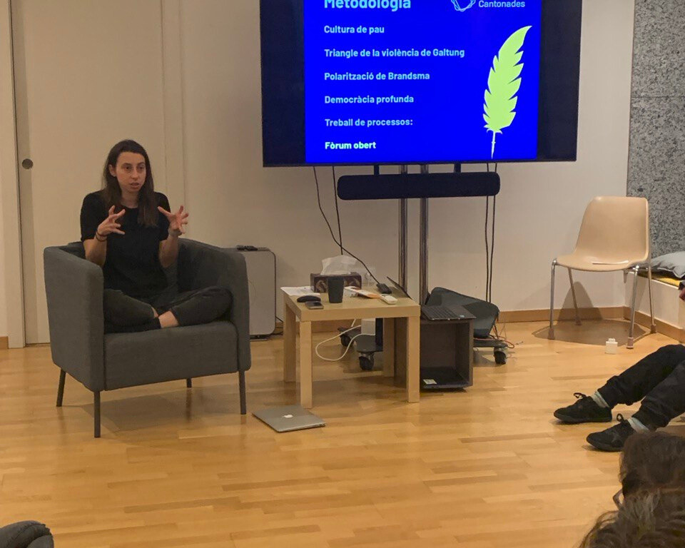 Aquest 2025 també hem dit adeu a 4 estudiants que han acabat els estudis: el Simó, l'Amaia, el Xoán i l'Ari. Precisament, l'Ari ens va visitar per presentar el seu treball final. Compartint l'espai amb Irene i Anuk, ens han portat grans reflexions sobre la pràctica del rol de la facilitació.
